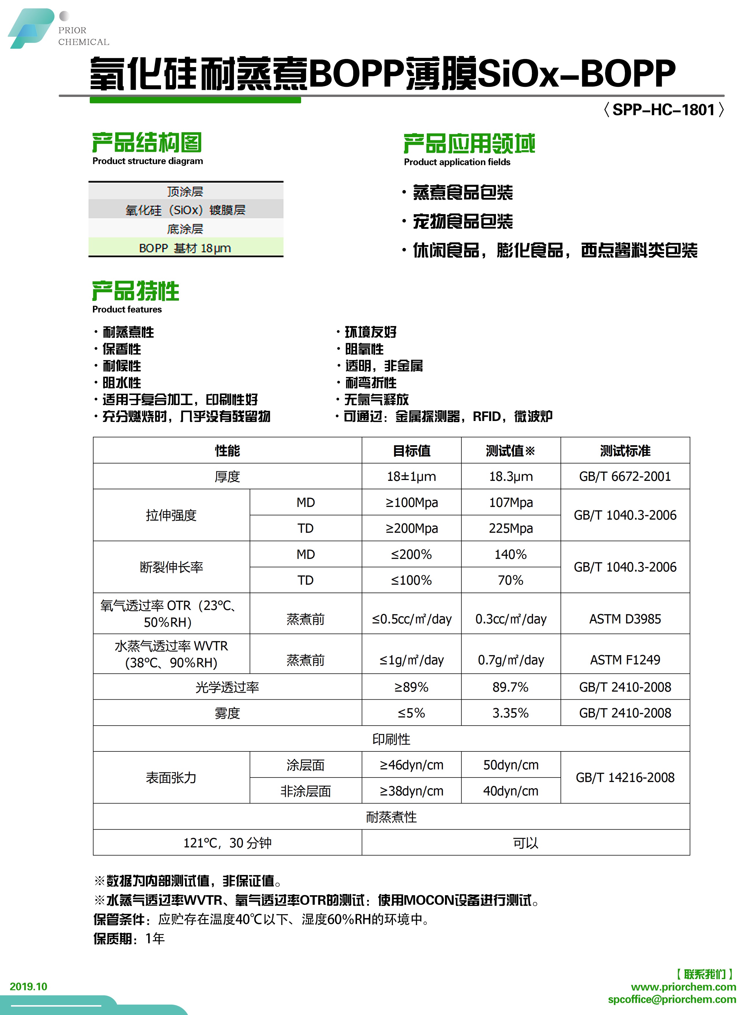 ※ 水蒸气透过率WVTR、氧气透过率OTR的测试:使用MOCON设备进行测试。