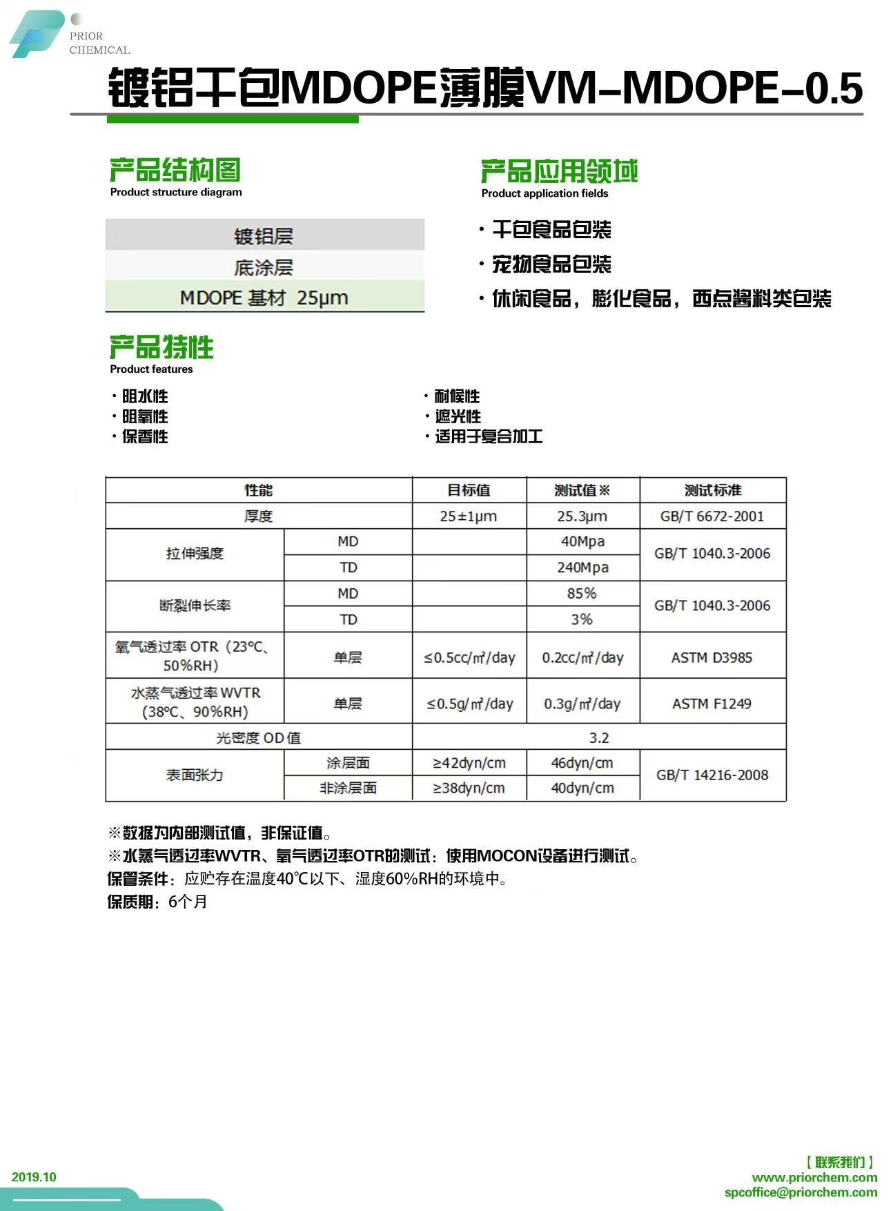 氧气透过率OTR(23℃、50%RH) | 单层 | ≤0.5cc/㎡/day | 0.2cc/㎡/day | ASTM D3985 |