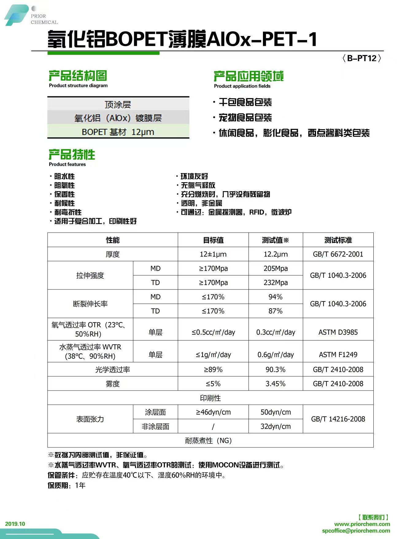 氧气透过率OTR(23℃、50%RH) | 单层 | ≤0.5cc/㎡/day | 0.3cc/㎡/day | ASTM D3985 |